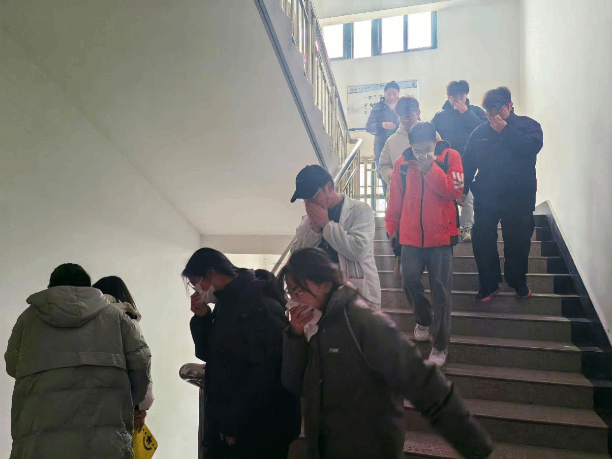 消防演练包括火灾事故应急疏散、灭火两个部分。实验室火灾事故应急逃生演练模拟实验室突遇火灾,演练开始后,同学们在任课老师的带领下,迅速用湿润毛巾捂住口、鼻,单列、靠右沿楼道有序撤离。