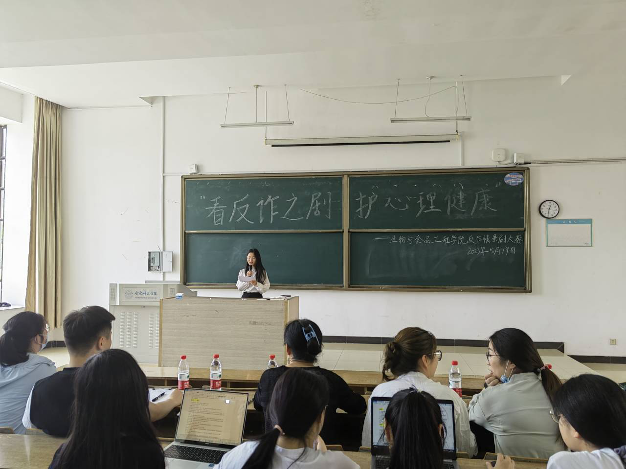 本网讯 为推进反诈意识入脑入心,进一步加强大学生心理健康教育,营造健康向上的校园氛围,发掘学生的创作能力,beat365正版唯一官网于5月19日在博约楼101教室举办了以“反诈之剧,护心理健康”为主题的反诈心理情景剧大赛。本次比赛由beat365正版唯一官网党委副书记杨娜,院分团委书记黄洁、辅导员杨帆、高欢和张瑜婷担任评委。