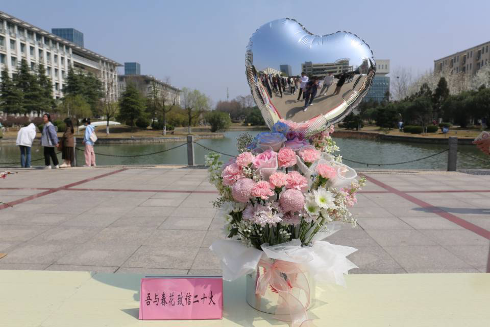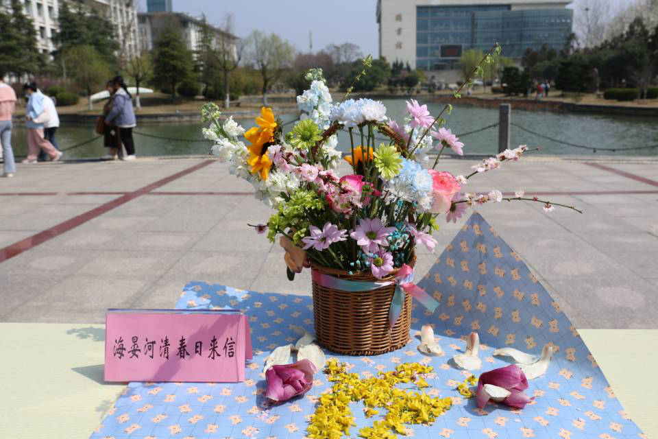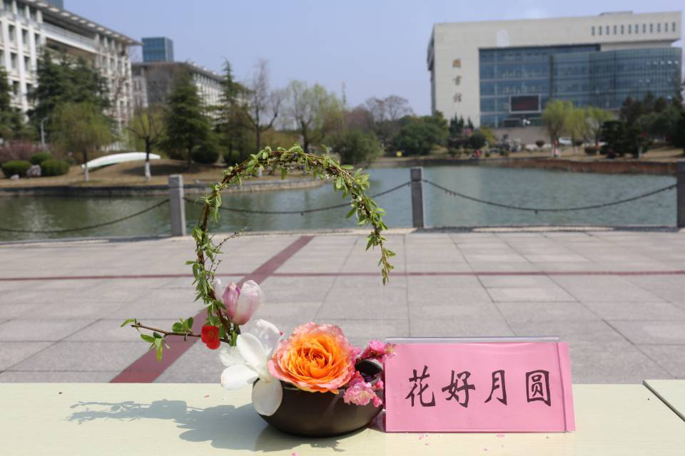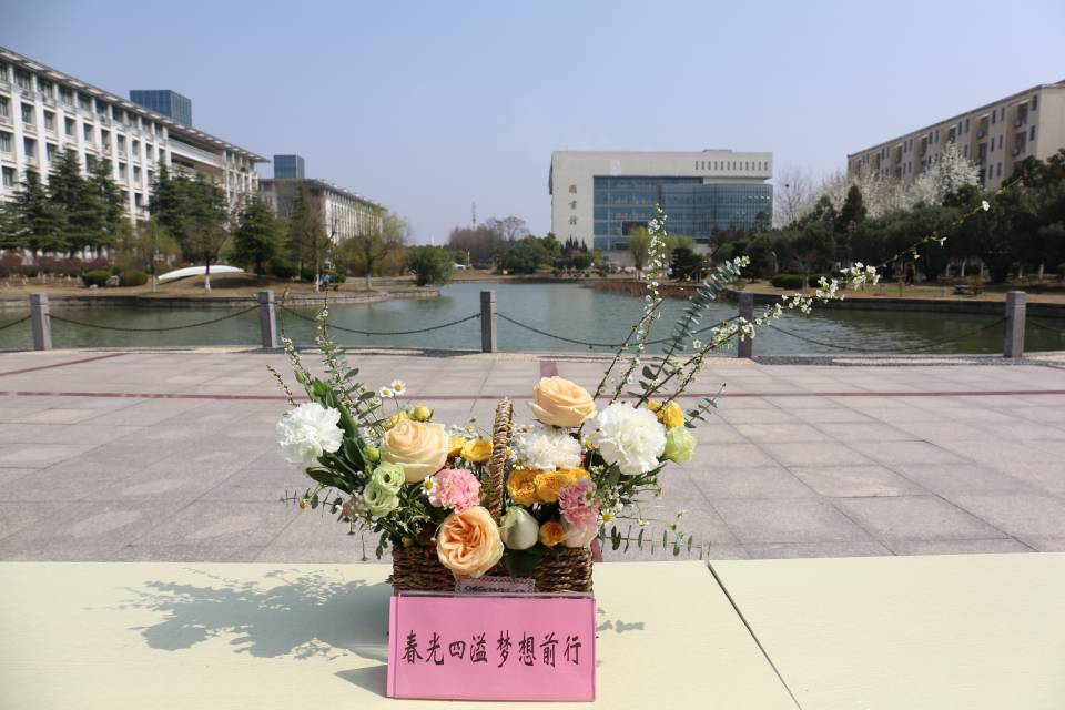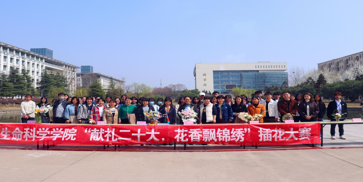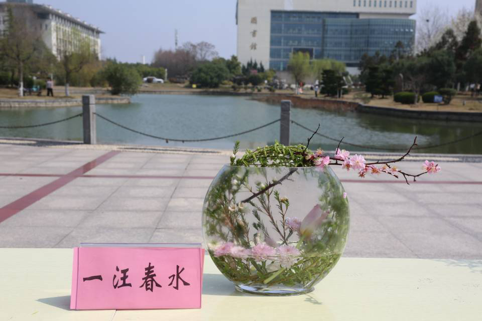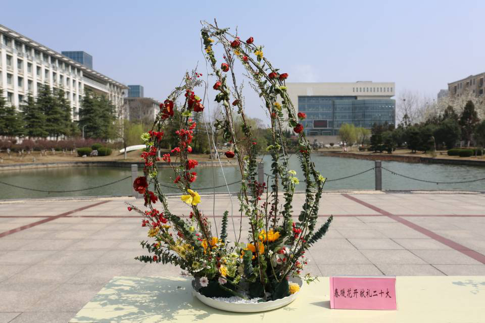 本网讯 3月9日中午,生命科学学院在竹园生活广场举办了主题为“献礼二十大,花香飘锦绣”第十四届校园插花艺术大赛。本次大赛邀请了生命科学学院党委书记郭桃芬、副书记杨娜,校团委老师钟树旺,专业教师李玲、欧祖兰、朱小茜、王玲玲、王宏、生科院团委书记黄洁及辅导员杨帆担任评委。