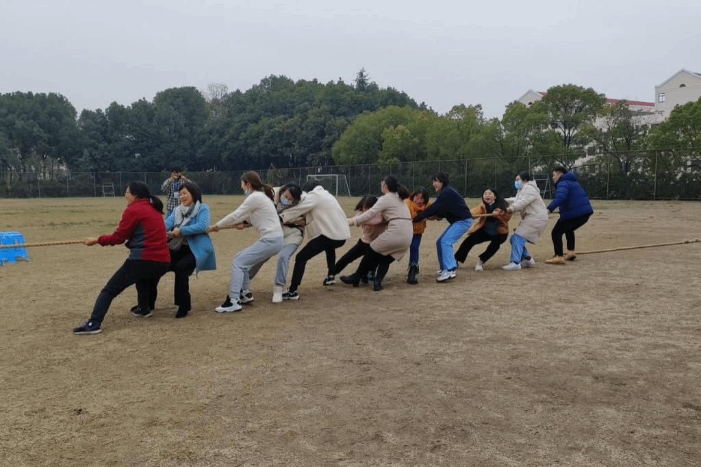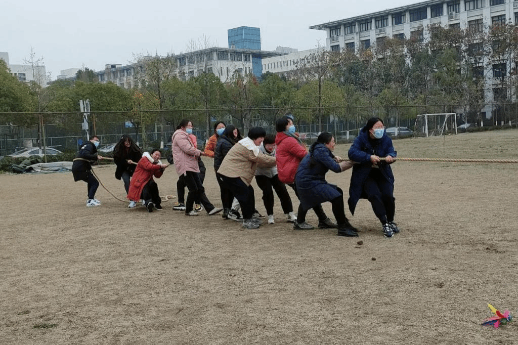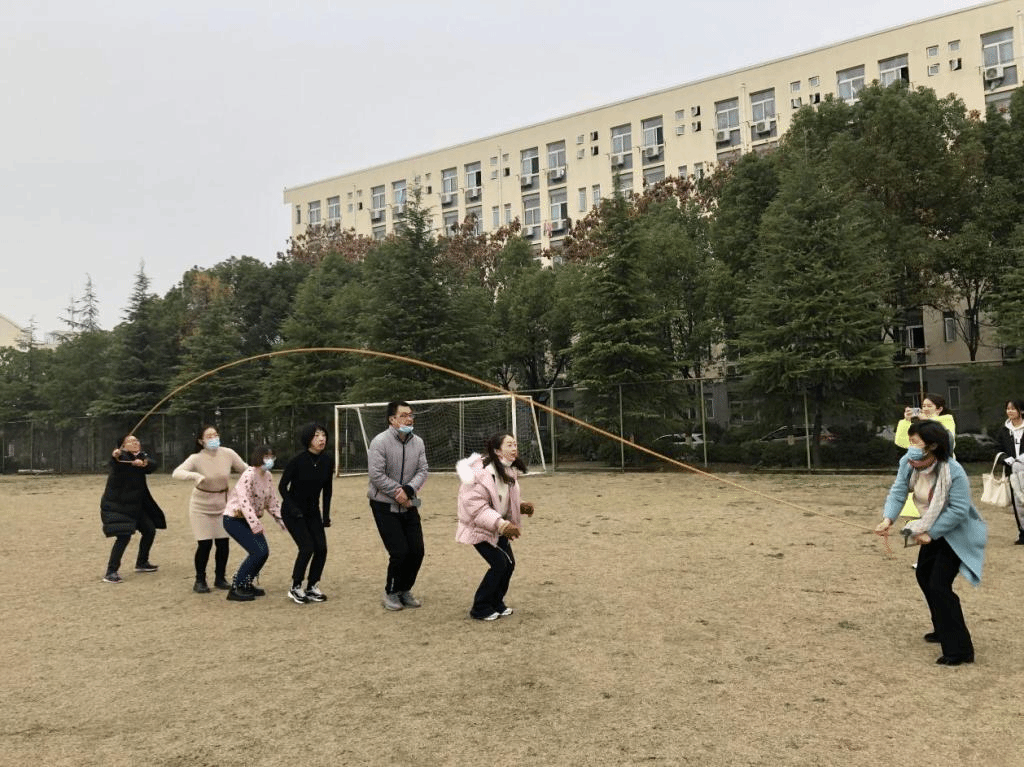 运动会共设立四个比赛项目:跳大绳、拔河、抢板凳和踢毽子。跳大绳比赛,随着裁判的一声令下,只见参赛选手穿梭其间,身轻如燕,动作敏捷,全身心投入到比赛当中。拔河比赛前,教职工们摩拳擦掌,屏息凝神,静待哨音。当裁判哨音响起,参赛队员紧握长绳,咬紧牙,拼尽全力向后拉。最终趣味运动会在大家的欢声笑语中拉下帷幕。