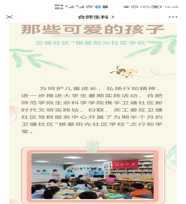 本网讯 近日,生命科学学院携手卫塘社区党群服务中心开展的“银菱阳光少年”之暑期行知学堂顺利结课。期间,学堂建设情况引起媒体的广泛关注。