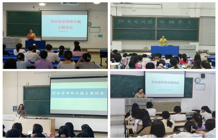 此外,辅导员们通过班级QQ群和微信群实时转发校保卫处发布的《锦绣派出所-每日电诈警情通报》、《锦绣派出所-警方通报-简要案情》等宣传材料;通过走访宿舍,检查学生安装国家反诈APP情况以及是否完成“四个必须”;利用谈心谈话,了解学生日常的消费情况和思想动态,及时发现安全隐患并解决问题;班委利用晚自习时间,在班级宣读《合肥师范学院保卫处反电信网络诈骗警示通报》,加大反诈骗知识宣传,并通过拍摄反诈骗话剧宣传视频,进一步提高同学们的反诈意识。