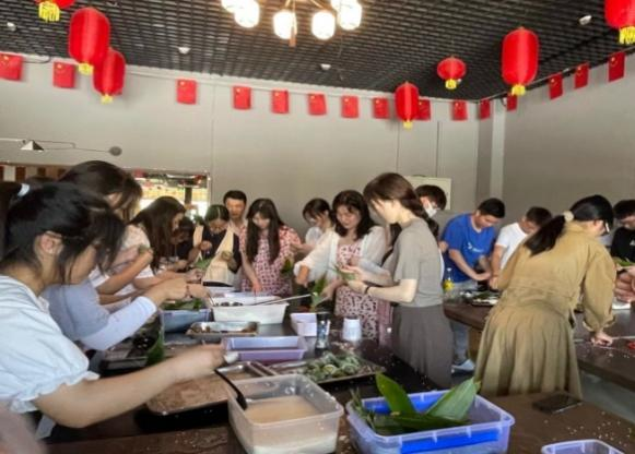 本网讯 粽叶飘香,龙舟竞渡,又是一年端午时。为了继承和发扬中国传统文化,加深青年大学生对中国传统节日的认识和理解。2022年6月5日下午,生命科学学院2021级生物技术D班在锦绣校区竹园三楼开展了“浓情端午·粽叶飘香”端午节包粽子活动,辅导员梁悦与同学们欢聚一堂,共度端午佳节。