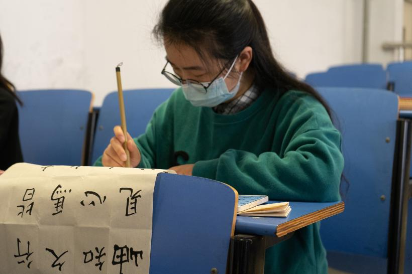 本次比赛共有三项内容,分别是硬笔书法、软笔书法和粉笔字书法。比赛现场,一个个优美的汉字从同学们的笔尖流淌出来,风格迥异,各有千秋,或遒劲有力、或刚柔并济。书写过程可谓是行云流水、笔走龙蛇,一笔一划道尽中国故事,一字一句诉尽中华文化。