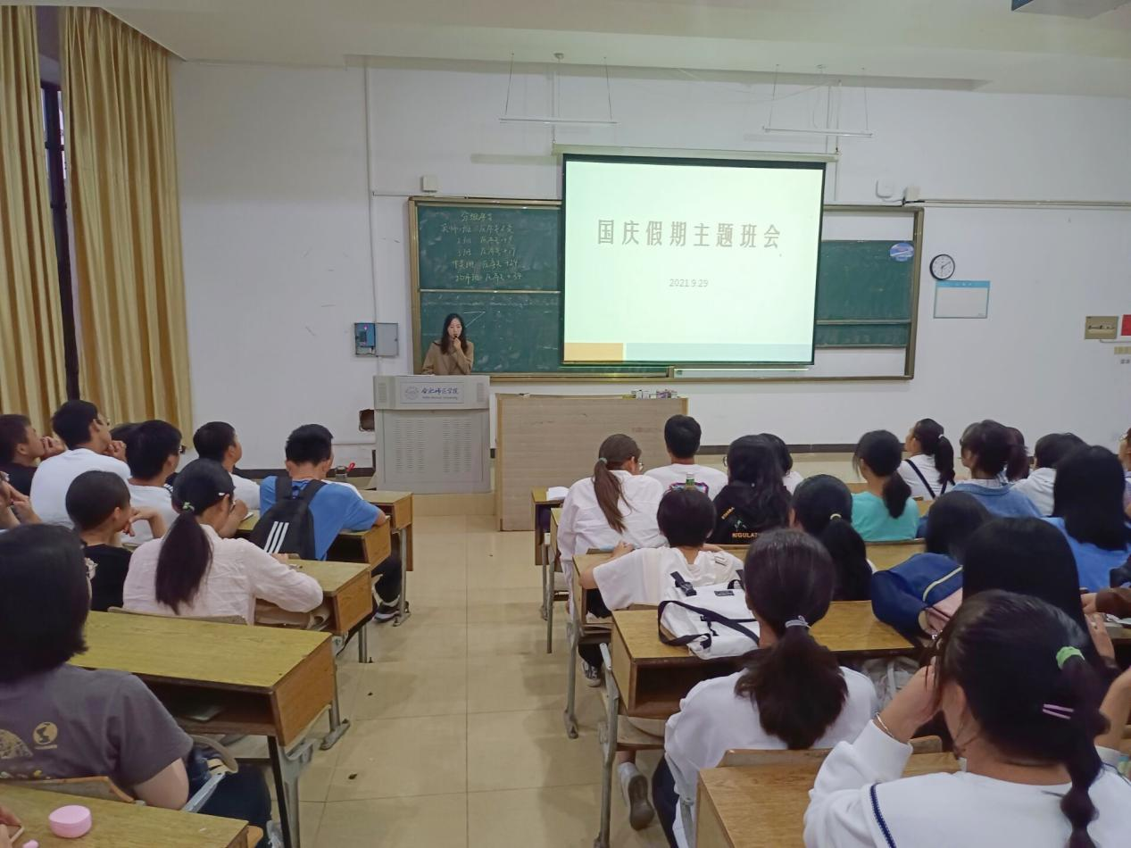 班会上,辅导员要求同学们国庆假期严格按照学校疫情防控要求,及时进行今日校园打卡,“非必要不离肥,非必要不出省”,回家的同学,注意交通安全和财物安全,注意往返途中做好个人防护,做好自身以及家人的健康管理。同时,对留校同学提出严格要求,要求留校同学严格遵守学校宿舍管理规定,遵守疫情防控规定,非必要不外出,安排专人负责每晚查寝,杜绝晚归、夜不归宿现象。
