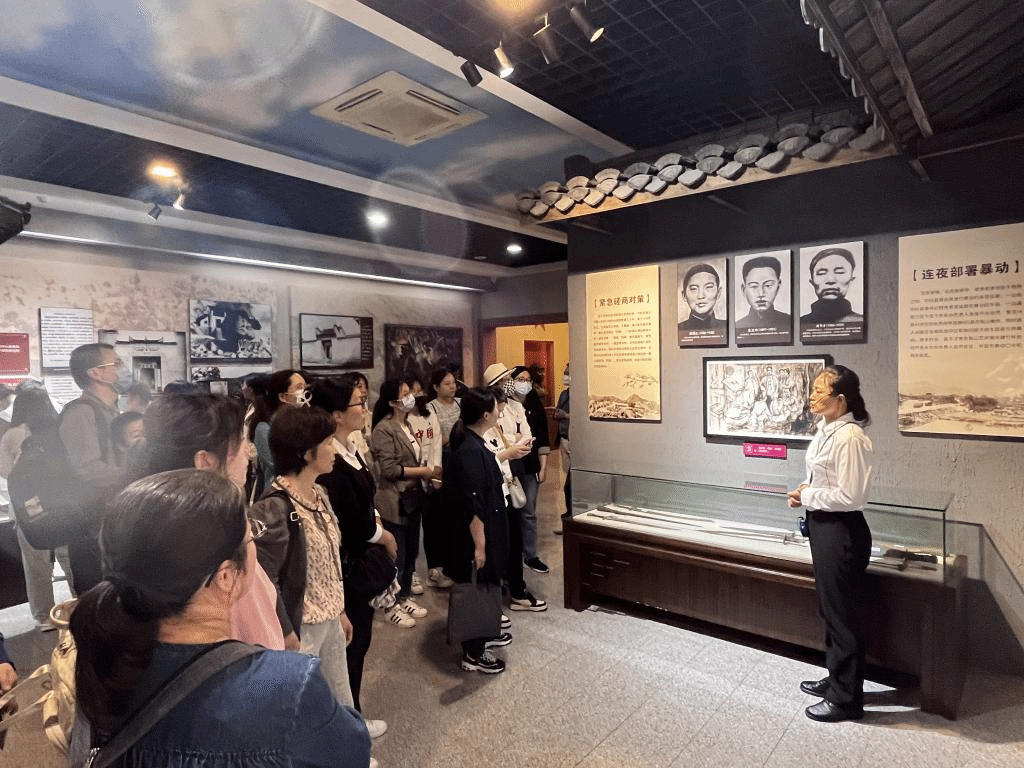 党员们在六霍起义纪念馆、苏维埃俱乐部旧址、赤卫军指挥部旧址、保卫局旧址等处参观革命历史建筑,聆听解说员讲解,深刻感悟“一镇十六将,独秀大别山”的红色历史内涵,追忆革命先烈英勇往事,缅怀革命先烈丰功伟绩和不朽精神。参观结束后,党员怀着崇敬的心情来到六霍起义纪念塔前,面对鲜红的党旗,重温入党誓词,用铮铮誓言彰显入党初心。