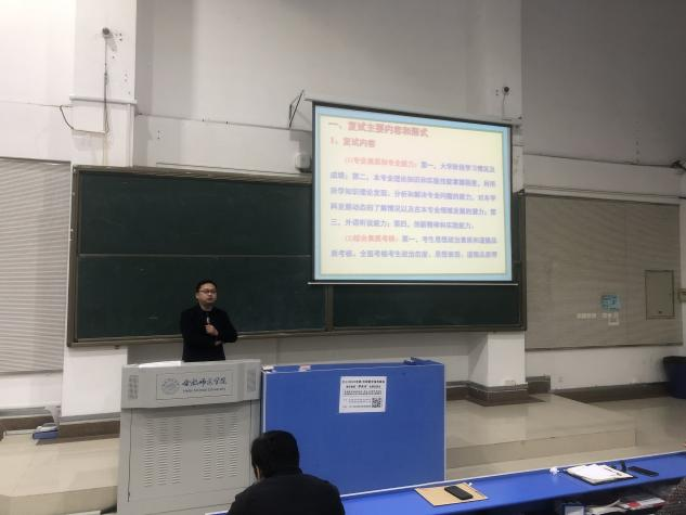 五位主讲教师分别为大家做了不同主题的报告。王占军围绕“心态、状态,稳态,计划,谋划”等几个方面对学生进行初试考前指导。陈金武强调复试除了考察学生的专业素养外,更多地关注学生的综合素质。他从自我介绍,语言组织,内容呈现等方面为同学们提供了面试小技巧并就复试基本流程进行了细致的介绍。方雪根据了解以往学生的考研经历,对各学科如何学习、看什么版本资料等提供了宝贵建议;程诚结合自身考研经历分享排解压力的方式方法并提出可行性建议;杨星星用自身的经历针对考研复习计划,心态等方面给同学们做了具体指导。随后,同学们对在复习过程中遇到的问题和困惑相继提问,老师们一一悉心解答。