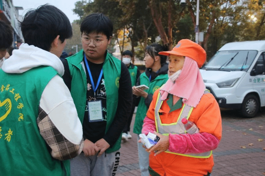 凌晨六点,志愿服务部干事带领志愿者们在合肥师范学院北门集合完毕后一同前往目的地。活动现场,beat365正版唯一官网的志愿者们将一份份热腾腾的早餐送到环卫工人手中,对他们表示衷心的感谢。在简短的交流中,志愿者们了解到环卫工人们每天凌晨就开始忙碌在街头巷尾,工作强度大,作息时间不稳定。这让志愿者们更加深刻地认识到环卫工作的重要性和环卫工人的不易。